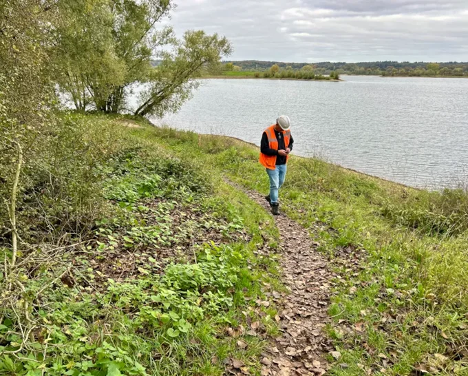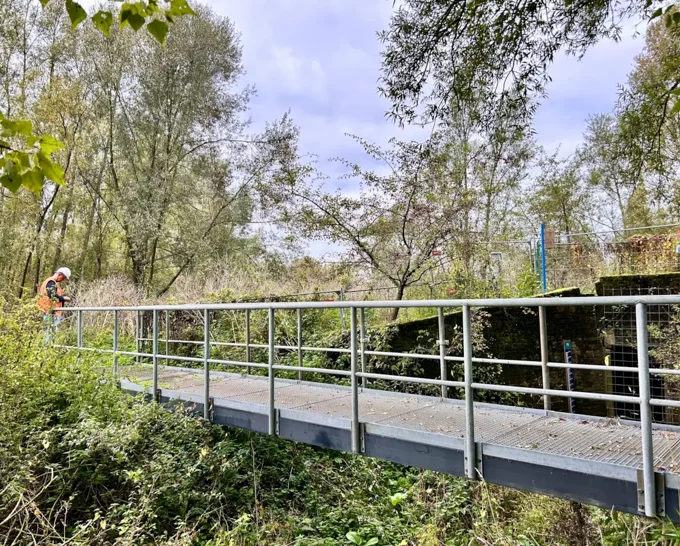 Wekelijks maakt Erik Kleinluchtenbeld hier een wandelrondje. Hij checkt de veiligheid van scheefgezakte bomen; of er zwerfafval ligt en hoe het staat met een noodbrug. ‘Hier ligt een oude duiker die op instorten staat. Die hebben we afgesloten voor het publiek, want het is een geliefd wandelrondje en de duiker werd te gevaarlijk. Naast de oude duiker hebben we een stalen noodbrug neergelegd.’ Van de brug maakt hij foto’s; net als van andere plekken die hij onderweg tegenkomt. Die foto’s plaatst hij meteen in het iASSET-asysteem van IJsselwaarden, plus aanvullende informatie. ‘Zo houden we bij wat er gebeurt en verandert in de uiterwaarden van de IJssel. Dan weten we beter wanneer er een moment komt dat we moeten ingrijpen.’